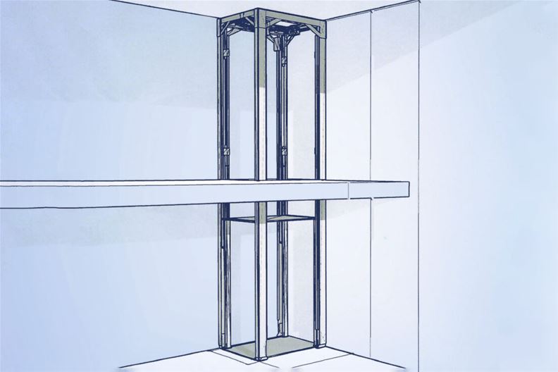 Das Grundgerüst des Hauslifts ist auf jedes Mass anpassbar und wird als Paket, zusammen mit dem Antrieb, ausgeliefert und montiert. Die Verkleidung kann der Schreiner ausführen, so dass sie sich gut in die bestehende Wohnung einfügt. Es ist lediglich ein Deckendurchbruch erforderlich, und der Lift wird an eine normale Steckdose angeschlossen.