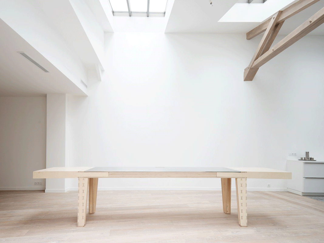 Das Atelier JMCA hat den speziellen Tisch für die Pariser Coworking-Gemeinschaft Volume gestaltet. Dort teilen verschiedene Kleinstunternehmen nicht nur ihre Büros, sie nutzen auch die Küche und die Werkstätten gemeinsam.