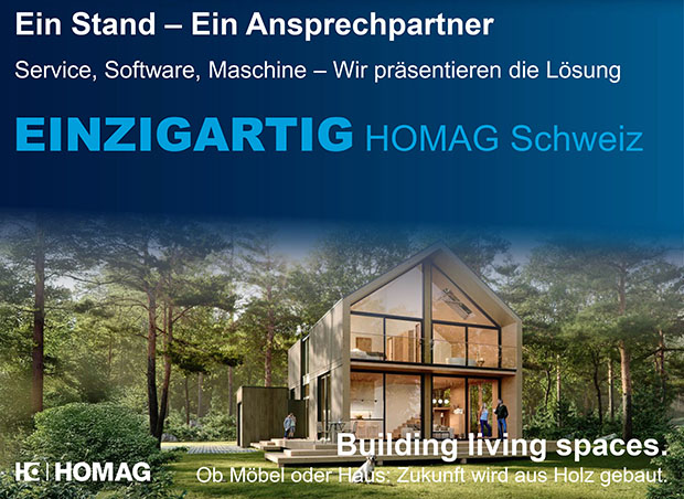 An der Fachmesse HOLZ in Basel präsentiert sich HOMAG Schweiz EINZIGARTIG. Mit einem Auftritt, der wie kein anderer das perfekte Zusammenspiel aus intelligenter Software, erstklassigem Service und leistungsstarken Maschinen verkörpert. Alles aus einer Hand. Alles HOMAG Schweiz.