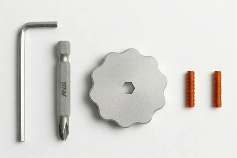 Der «Drillbit Gyro» besteht aus einem 1/4-Zoll-Sechskantbit, einer Scheibe sowie zwei Madenschrauben.