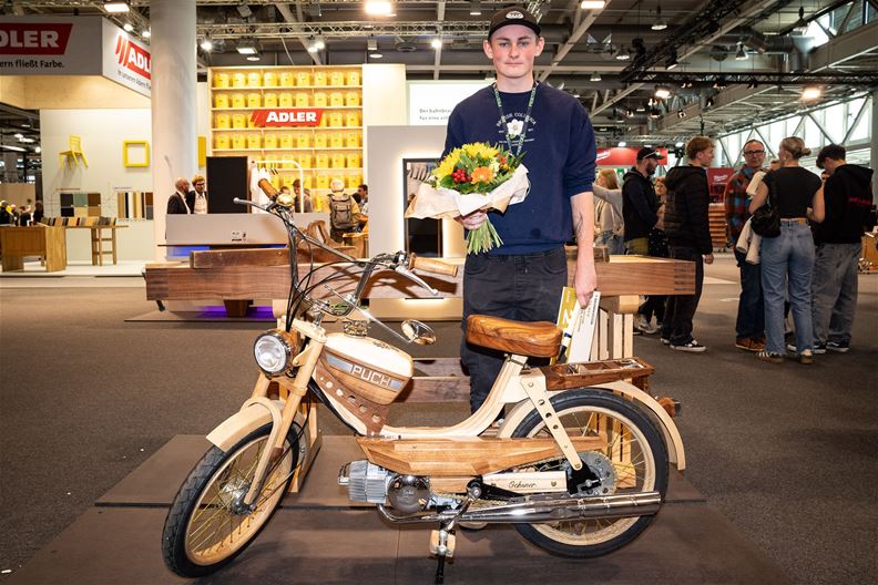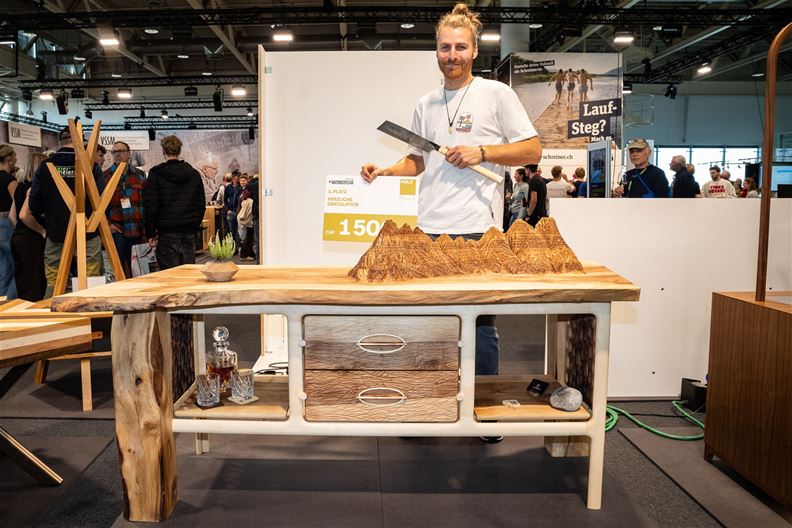 Im zweiten Rang klassierte sich Aaron Ochsner aus Herisau AR (Bodenmann AG, Herisau), mit seinem Holz-Töffli. Den dritten Platz belegte Michael Koukal aus Sarnen OW (Müller die Fachschreinerei AG, Sarnen). Das auffallende Bergrelief auf seinem Nussbaum-Schreibtisch schnitzte er mit der Oberfräse und scharfen Messern anhand eines Fotos. Über 300 Stunden hat er in seiner Freizeit daran gearbeitet und dabei 7 kg abgenommen.