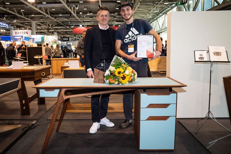 Den mit 1000 Franken dotierten OPO-Beschlagpreis erhielt Matthias Heim aus Winikon LU (Urs Dubach AG, Büron LU) für seinen Schreibtisch. Ausserdem hat Robin Föhn aus Steinen SZ (Schreinerei von Rickenbach AG, Ibach SZ) den Lamello-Talentpreis erhalten. Bei seinem Möbel handelt es sich um eine mit Nussbaum furnierte Garderobe kombiniert mit schwarzem Kunstharz.