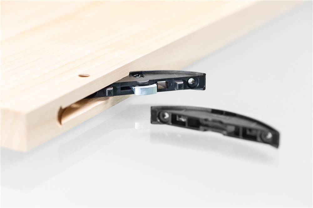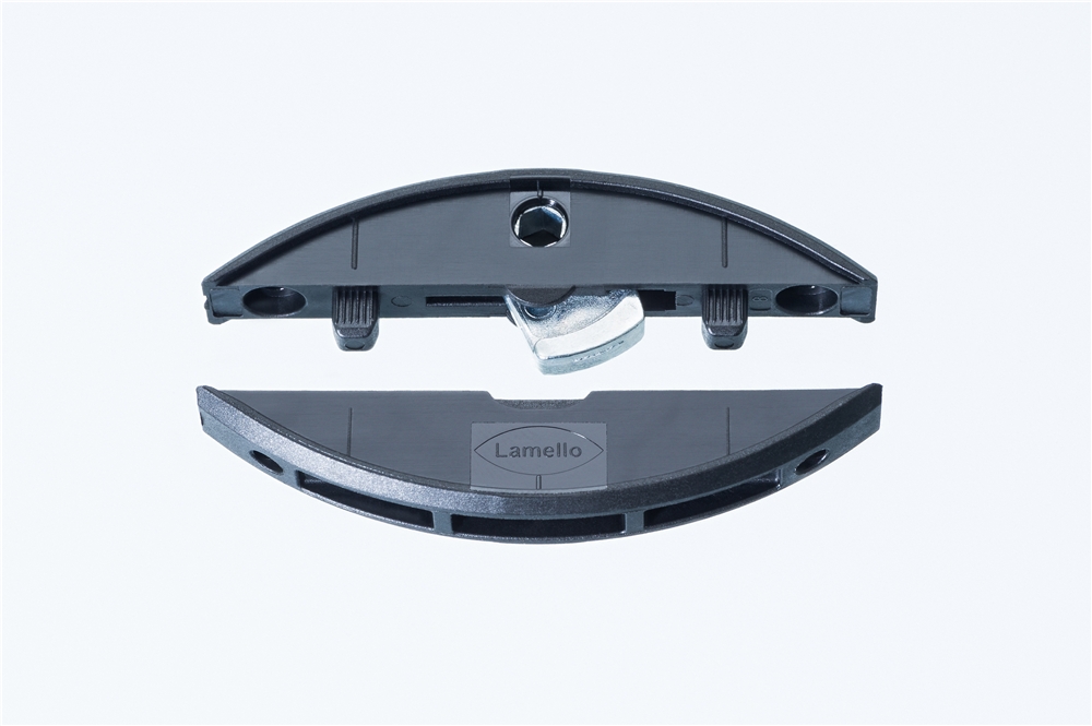 Der neue «Clamex P-14» basiert auf dem P-System von Lamello. Sie lässt sich sowohl mit CNC-Technik als auch mit der Handmaschine Zeta P2 einfräsen. Der Verbinder kann werkzeuglos eingeschoben werden und eignet sich für zerlegbare oder fest verleimte Verbindungen.