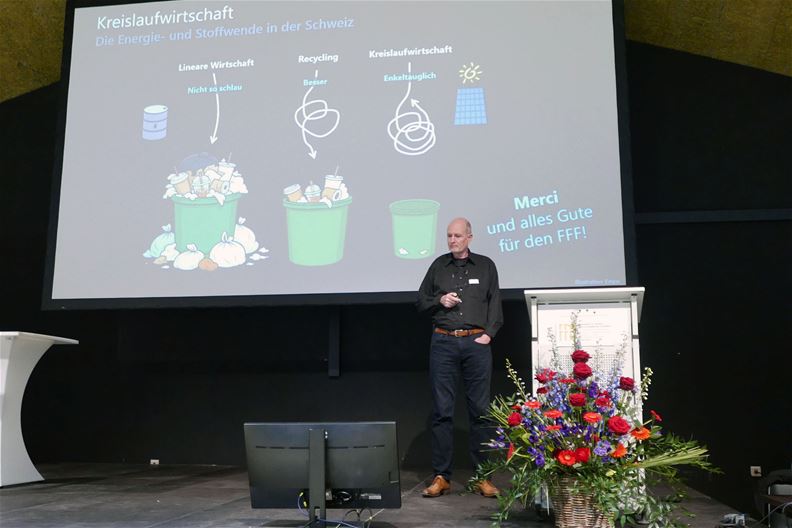 Marcel Gauch zeigte auf, dass sich die auf der Erde verfügbaren Materialien nicht vermehren lassen. Das Gleiche gilt für die Energieträger Öl, Gas und Kohle. Entsprechend sollte man fertige Produkte lange verwenden, egal ob es Fenster, ganze Häuser oder Handys sind. Um die Energie- und Stoffwende zu schaffen, ist heute oft von Recycling die Rede. Doch nur die kaum noch Abfall produzierende Kreislaufwirtschaft ist laut Gauch «enkeltauglich». So wird das Verhalten bezeichnet, das die Lebensgrundlagen künftiger Generationen nicht zerstört.