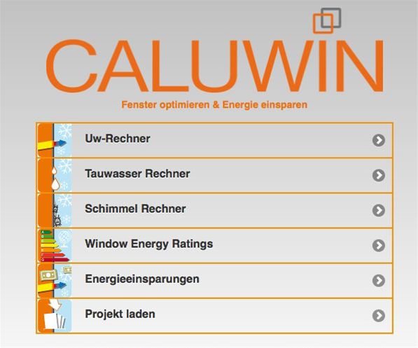 «Caluwin» ist ein Software Tool, mit dem die Energieeffizienz von Fenstern ermittelt und verbessert werden kann, um Energiekosten beim Heizen im Winter oder Kühlen im Sommer einzusparen. Mit dem Tool kann auch der Wohnkomfort von Fenstern untersucht werden, um bei unterschiedlichen Klimasituationen die Gefahr einer Tauwasser- oder Schimmelpilzbildung zu beurteilen.