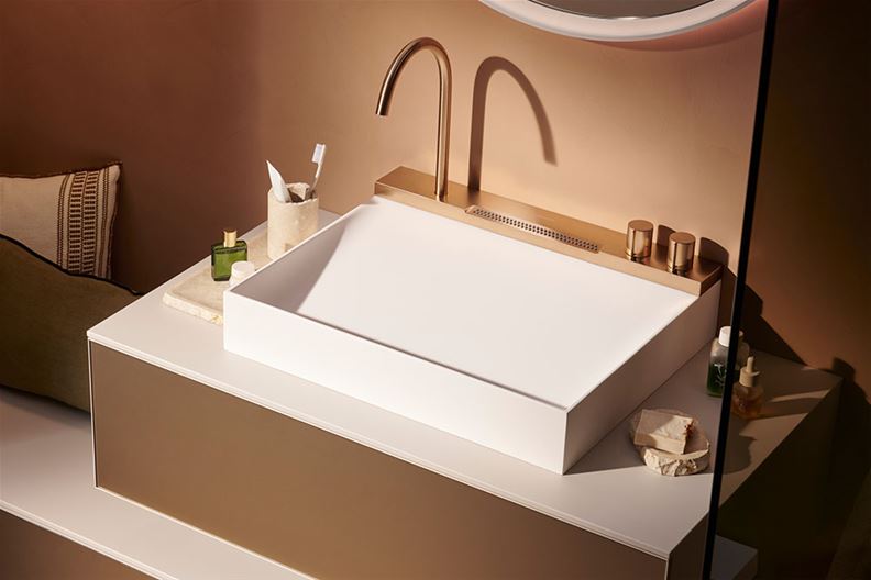 Ziel der Entwicklung war, die täglichen Routinen am Waschtisch so natürlich, komfortabel und freudvoll wie möglich zu gestalten. Deshalb verfügt «Avalegra» neben einem schlanken Auslauf über einen Brausestrahl. Er kommt aus der Mitte des Bedienelements auf die Nutzenden zu. Dabei reduziert ein Druckbegrenzer den Verbrauch auf fünf Liter pro Minute. Anschliessend wird das Wasser vom Waschbecken aufgefangen.