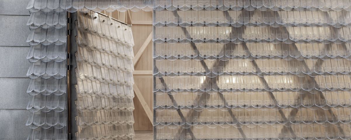Die Holzkonstruktion im Innern des neuen Glashauses muss also die benachbarten historischen Gebäude stabilisieren. Denn seine ungewöhnliche Hülle stützt natürlich nicht. Sie übernimmt auch keine thermische Funktion. Jeder Ziegel der Biberschwanzeindeckung lässt sich einzeln austauschen. Sie sind durch Abstandshalter aus Eichenholz gesichert und im Inneren mit Splitterschutzlack versehen.