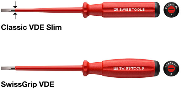 Superschlank im vorderen Drittel. So erreicht die Klinge des PB Swiss Tools Classic VDE Slim Elektriker-Schraubenziehers auch tief liegende Schrauben und Federzugelemente leicht und sicher.