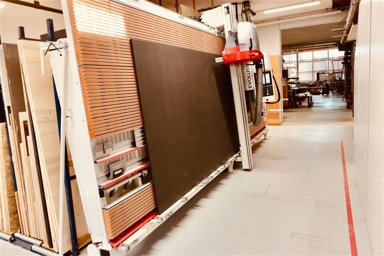 Die Adelbodener Holzbau Burn AG vereinigt als Gemischtbetrieb Schreinerei und Zimmerei unter einem Dach. Um die Effizienz zu steigern, nutzen beide Geschäftsfelder den Maschinenpark in Teilbereichen. Eine besondere Rolle spielt dabei der Plattenzuschnitt. Es gilt unterschiedliche Plattenlängen – 280 cm in der Schreinerei, bis zu 500 cm im Zimmereibereich – automatisch und sehr ergonomisch zuzuschneiden.