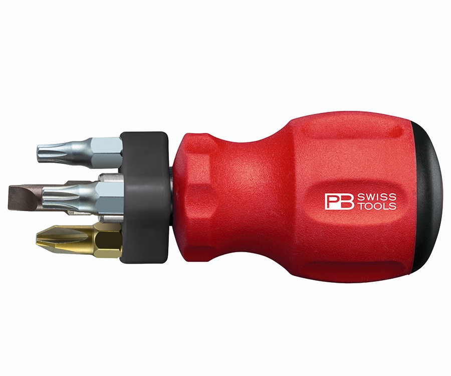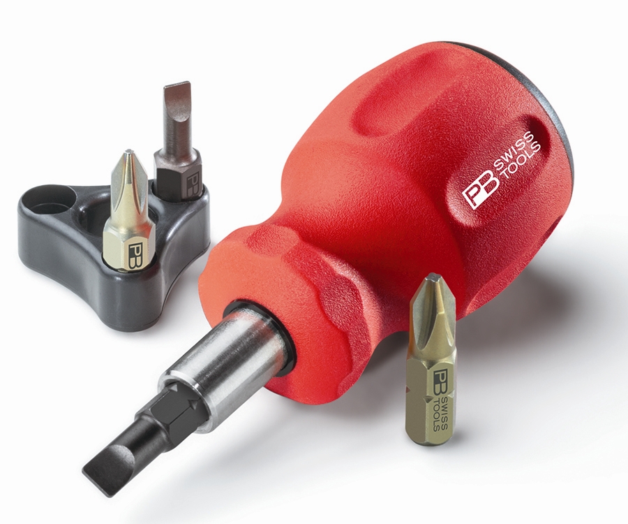 Selbst wenn heute nicht mehr viel von Hand geschraubt wird: An engen, schwer zugänglichen Stellen ist jeder Monteur froh, wenn er einen Schraubenzieher mit kompaktem, kurzem Griff dabei hat. PB Swiss Tools hat jetzt den Stubby-Bithalter mit Magazin entwickelt. Er sorgt dafür, dass man auf der Baustelle die wichtigsten Bits immer zur Hand hat.