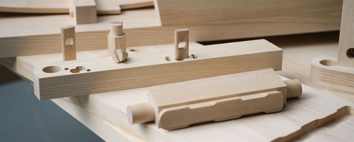 Was mit dieser und weiteren leimlosen Verbindungen möglich ist, zeigt die Bank «monoki 1» von nurholz. Für private Nutzung sowie die Gastronomie konzipiert, kommt sie ganz ohne Metallteile aus. Trotzdem lassen sich ihre Beine platzsparend einklappen. Sowohl für den Zusammenbau als auch zum vollständigen Zerlegen in alle Einzelteile reichen ein Kunststoffhammer und ein Drehwerkzeug aus.