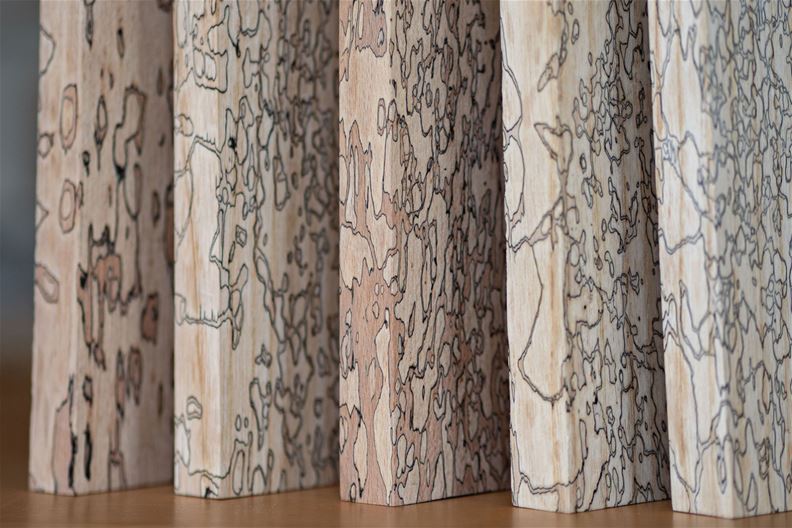 Die von Pilzen gezeichneten Muster ziehen sich durch die ganze Werkstückdicke. Bild: Empa