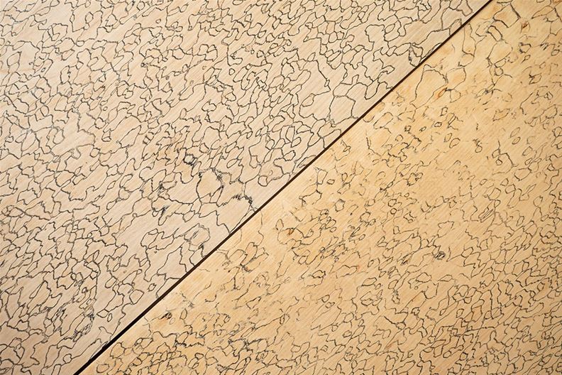 Marmorholz vereint Gegensätze: Einheimisch und exklusiv, natürlich und doch Hightech. Das besondere Holz zeichnet sich durch ein Muster aus feinen schwarzen Linien aus, die es einem Pilz verdankt. Was früher ein seltener Zufallsfund im Wald war, ist heute ein standardisiertes Herstellungsverfahren – dank der Zusammenarbeit der Schreinerei Koster AG Holzwelten aus Arnegg SG und der Empa.