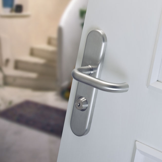 Die neuen Hoppe-Schutzgarnituren ES1 mit Dichtungseinlage schützen zusätzlich das Türblatt vor Wasser. Einerseits vor Feuchtigkeit durch Kondenswasser, andererseits vor eindringendem Wasser durch Schlagregen. Selbstverständlich sind alle Schutzgarnituren nach DIN 18257 und DIN EN 1906 geprüft.