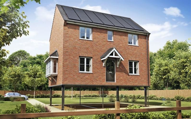 Geräte wie Kühl-und Gefrierschrank werden im angehobenen Zustand von Solarzellen auf dem Dach und einer Batterie mit Strom versorgt. Die englischen Entwickler setzen zudem auf flexible Anschlussleitungen für Wasser und Abwasser. Der Prototyp ist als Backsteinbau vorgesehen, man kann sich aber das System auch gut in Holzbauweise vorstellen.
