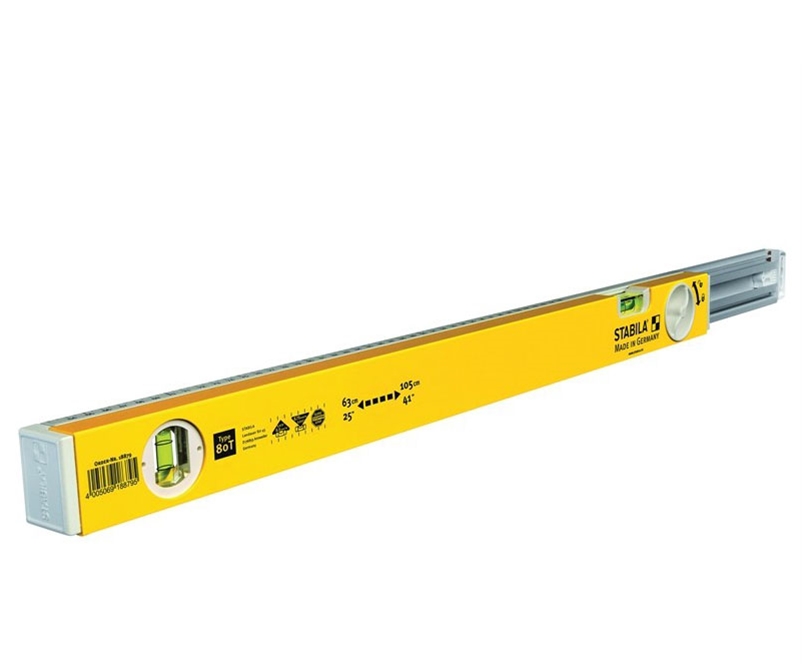 Überall wo Innenmasse benötigt werden, Bauelemente auszurichten sind und Auflageflächen kontrolliert werden müssen, ist man mit der 80 T gut ausgerüstet – ob bei Schreinerarbeiten, im Türen- oder Fensterbau. Die Wasserwaage wird in den zwei Längen 63 cm, ausziehbar bis 105 cm, und 80 cm, ausziehbar bis 127 cm, angeboten.