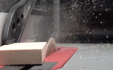 Ein Knall und schon fliegt das Werkstück durch die Luft. Was genau bei einem Rückschlag an der Kreissäge passiert, zeigt die Superzeitlupe des Kurzvideos eindrücklich.
